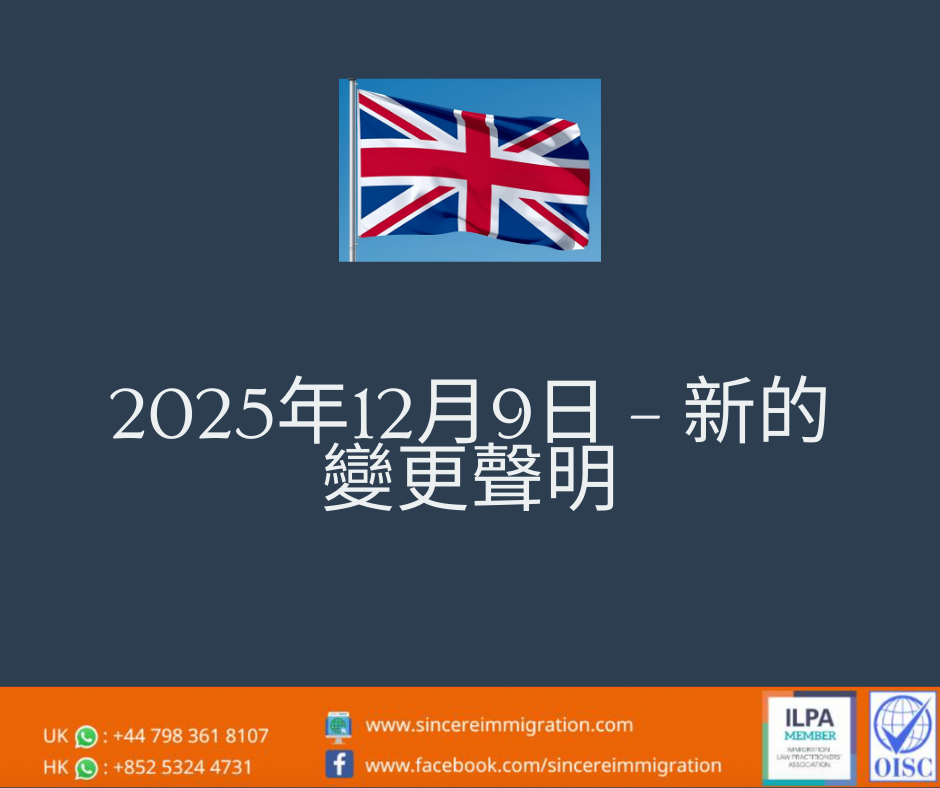 2025年12月9日,英國內政部向議會提交了一份新的《移民規則變更聲明》,以下是主要變更內容: