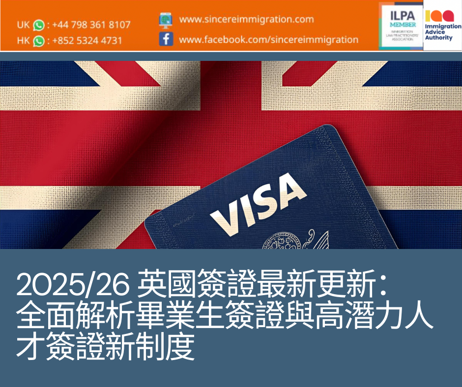 英國於 2025/26 年度 調整了針對學生與年輕專業人士的簽證規則,更新了 畢業生簽證(Graduate Visa) 及 高潛力人才簽證(High Potential Individual, HPI)。政策目標十分明確:吸引真正能為英國經濟作出貢獻的優秀人才。本指南將以簡單易懂的方式說明最新規定。